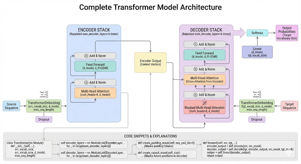 This breakdown of the transformer architecture is super useful, especially seeing the encoder and decoder stacks mapped out so clearly. What really caught my attention is how you structured the pre-training implementation code alongside the theory. Most resources either go too abstract or dump code without context, but connecting the actual weight updates to the conceptual flow makes it way easier to debug when things go wrong. Have you noticed any particular bottlenecks in the training loop that beginners tend to miss?